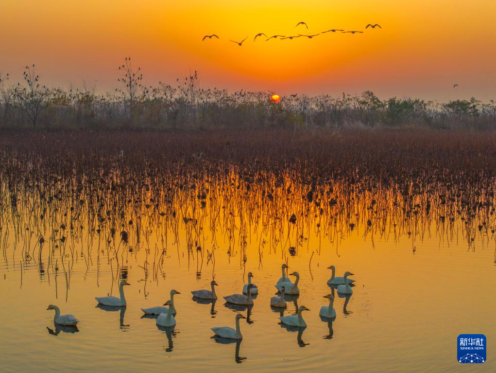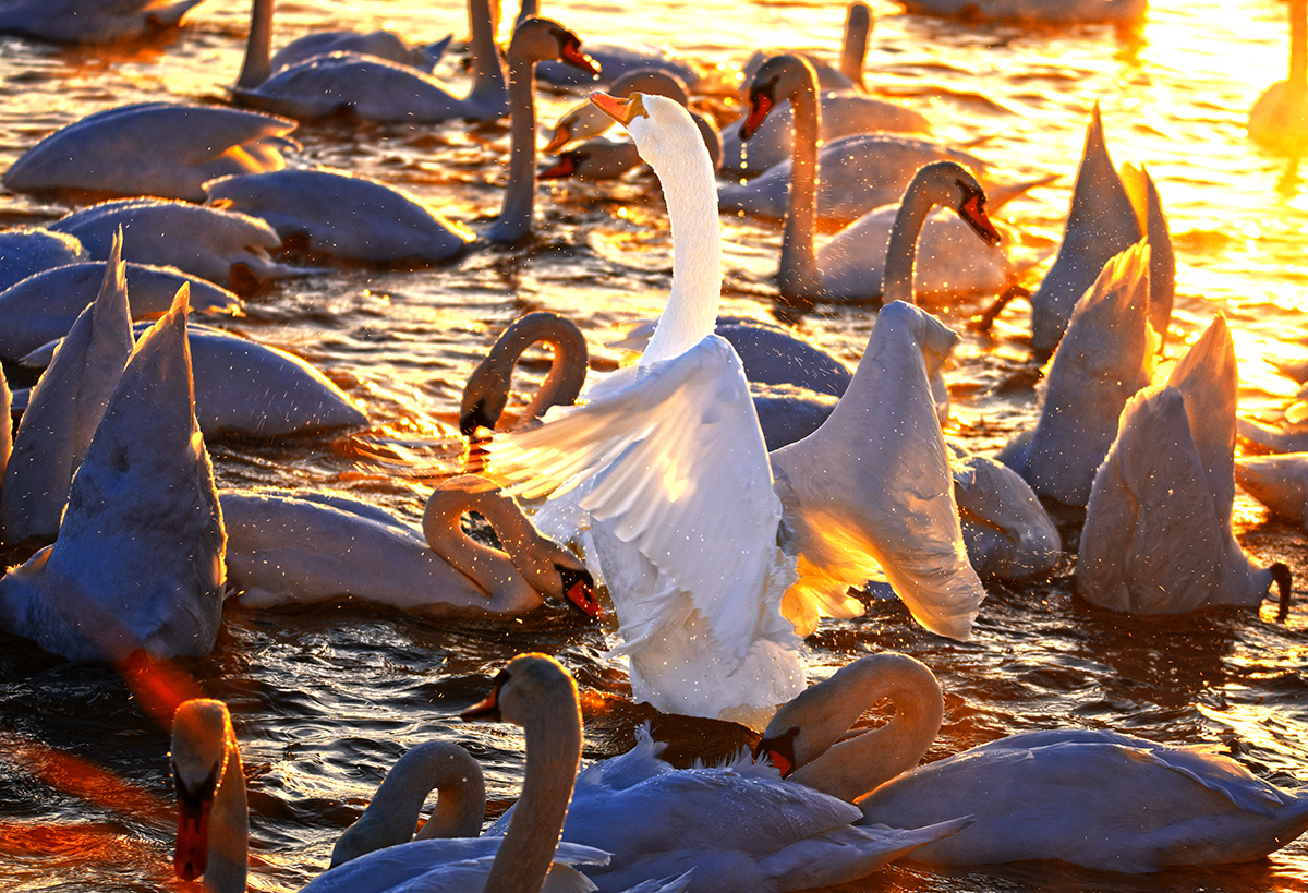 疆山如画丨533只天鹅已赴约 伊宁县天鹅泉朝霞如画