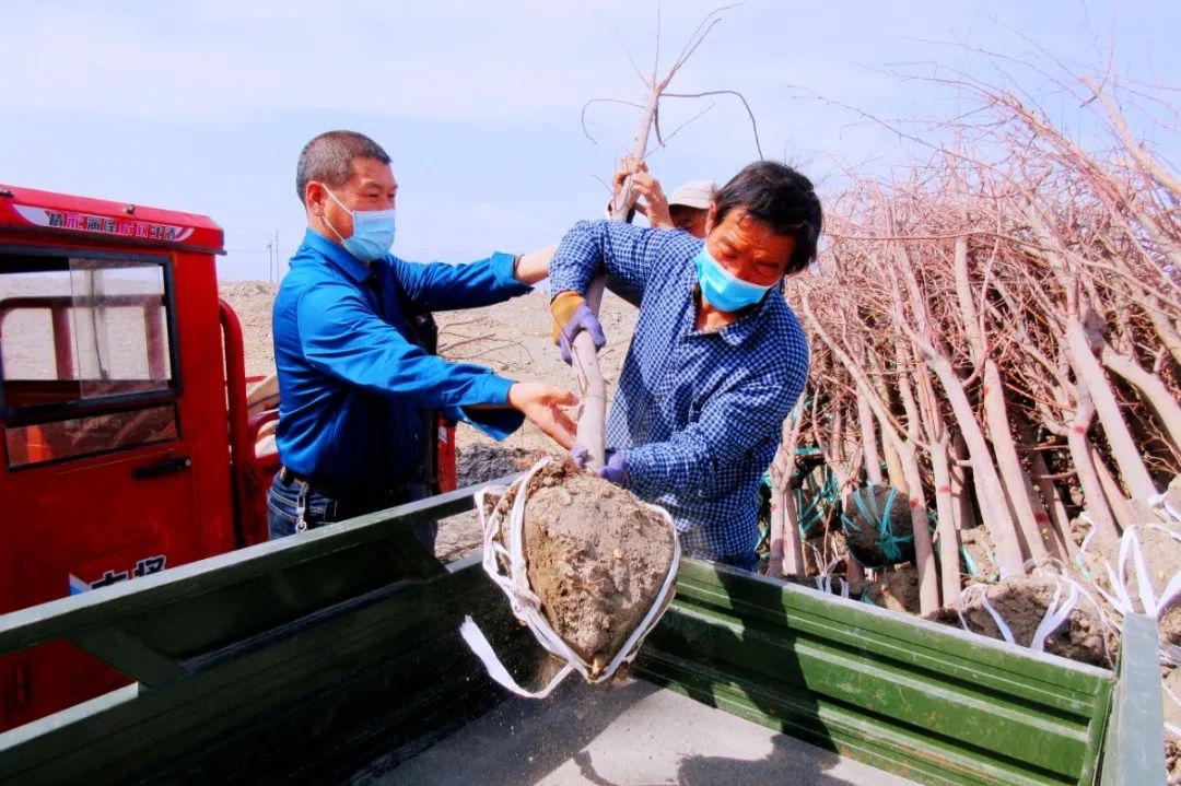 乌鲁木齐市达坂城区园林管理局驻东沟乡王家庄村工作队联合村“两委”,购买优质紫叶稠李树苗1300余棵,发放给村民栽种,绿化美化庭院环境。(乌鲁木齐市“访惠聚”办公室曲燕、杨瑞 供稿)