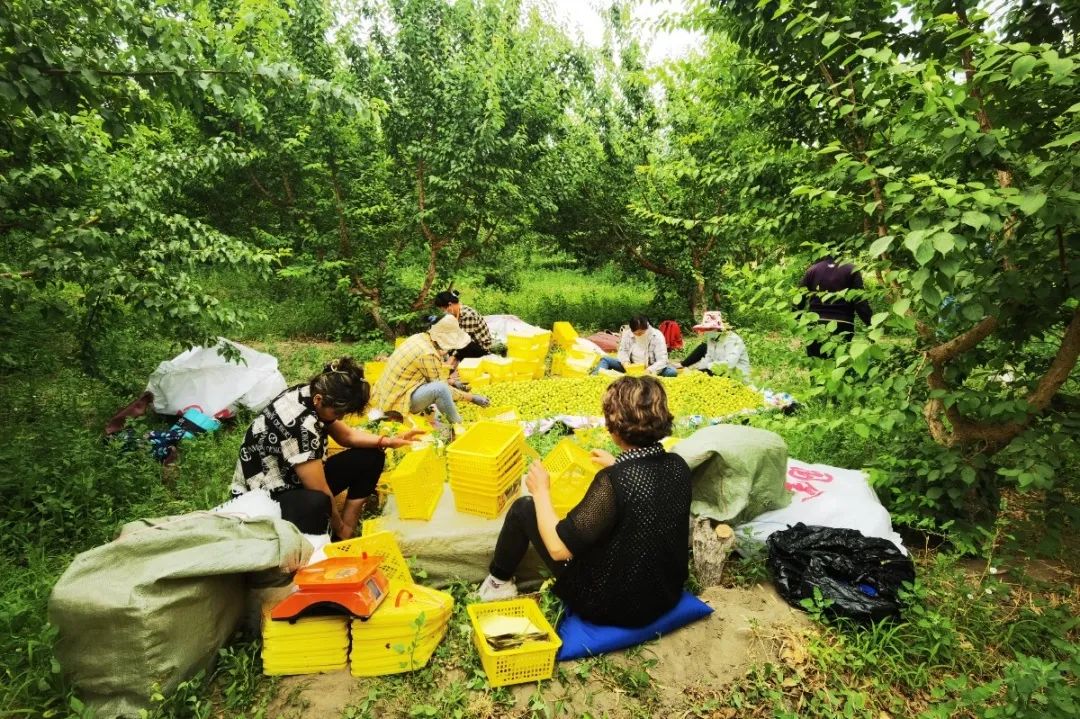 修建灌渠、栽种苗木、采收杏子……