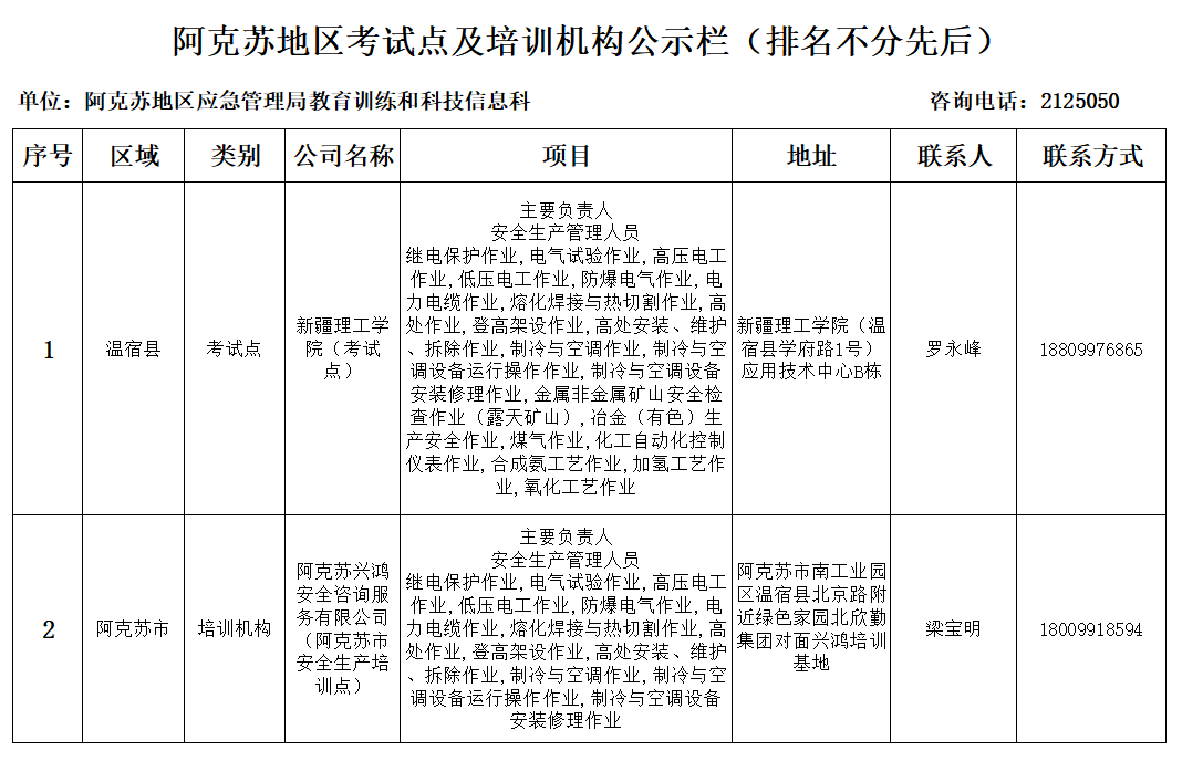 阿克苏地区考试点及培训机构公示