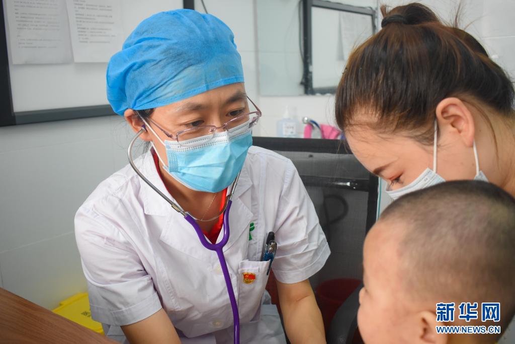 在新疆昆玉市人民医院,北京援疆医生于丽娟在接诊患儿(7月16日摄)。 新华社发(何丹 摄)