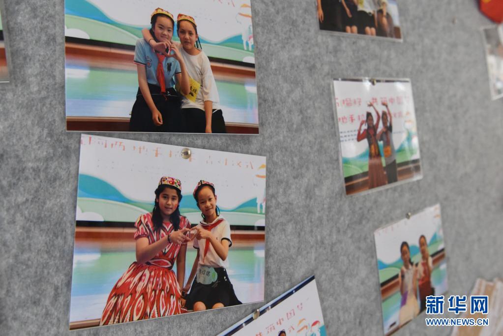 这是在新疆阿克苏市天杭实验学校拍摄的杭州阿克苏两地学生手拉手结对仪式的留影照片(7月4日摄)。 新华社记者 丁磊 摄