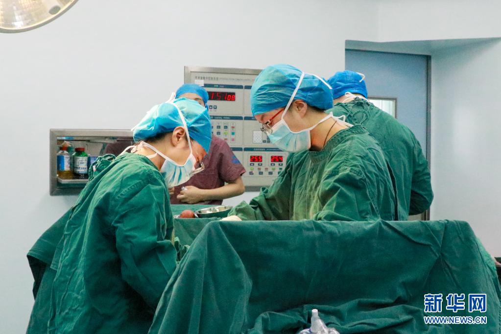 在新疆库车市人民医院,浙江宁波援疆医生黄芳(前右)在接生她援疆以来的第100个新生儿(6月29日摄)。 新华社发(王欣然 摄)