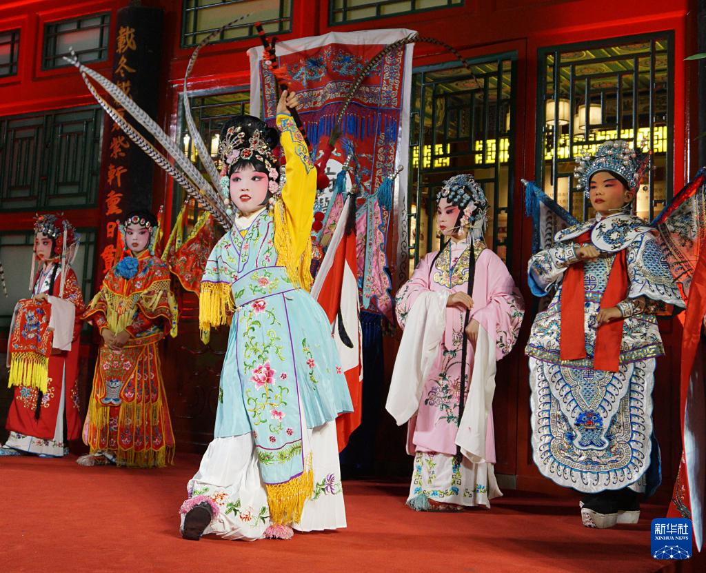 9月28日,府学胡同小学学生在中秋诗会活动中表演京剧。