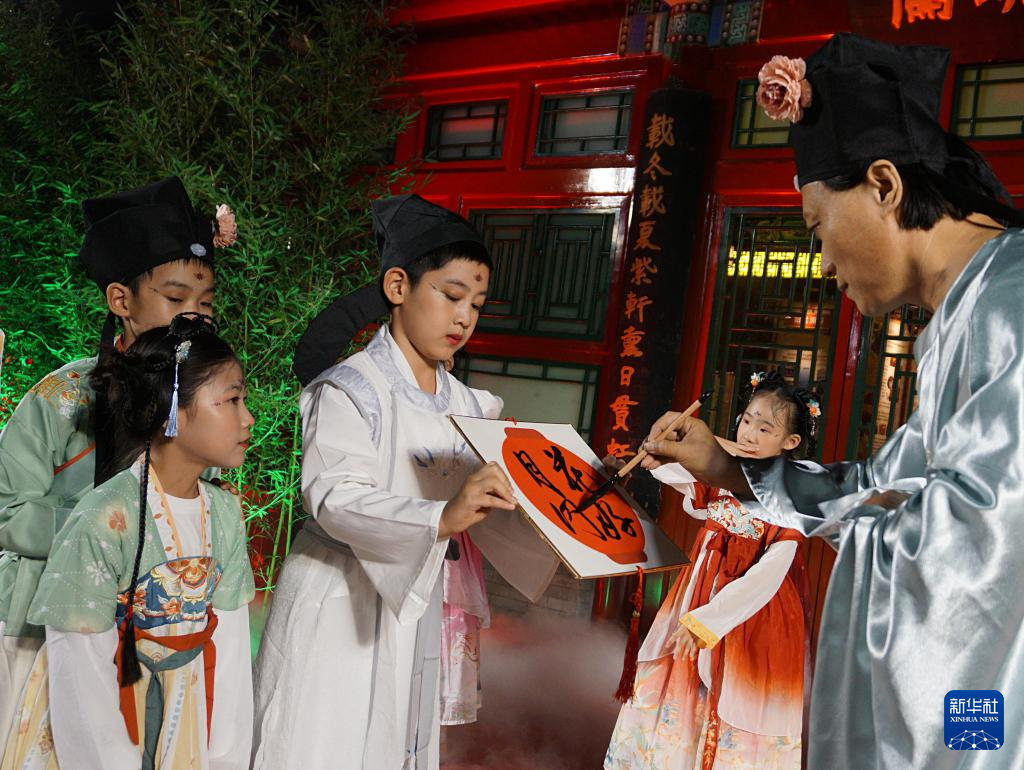9月28日,北京市东城区府学胡同小学举行主题为“学府诗韵诵中秋,雅乐清音迎华诞”的中秋诗会活动。学生们在活动中以诗词为舟、雅乐为桨,在弘扬传统文化的同时感受秋天的韵律和美感。
