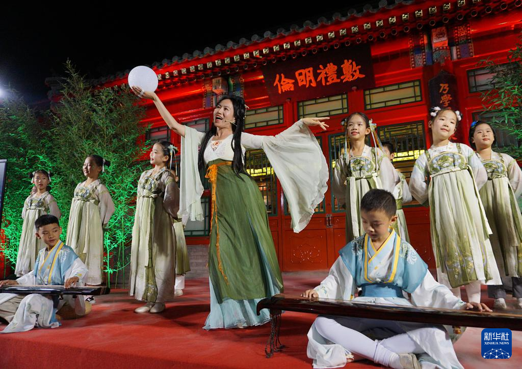 9月28日,府学胡同小学师生在中秋诗会活动中表演节目。