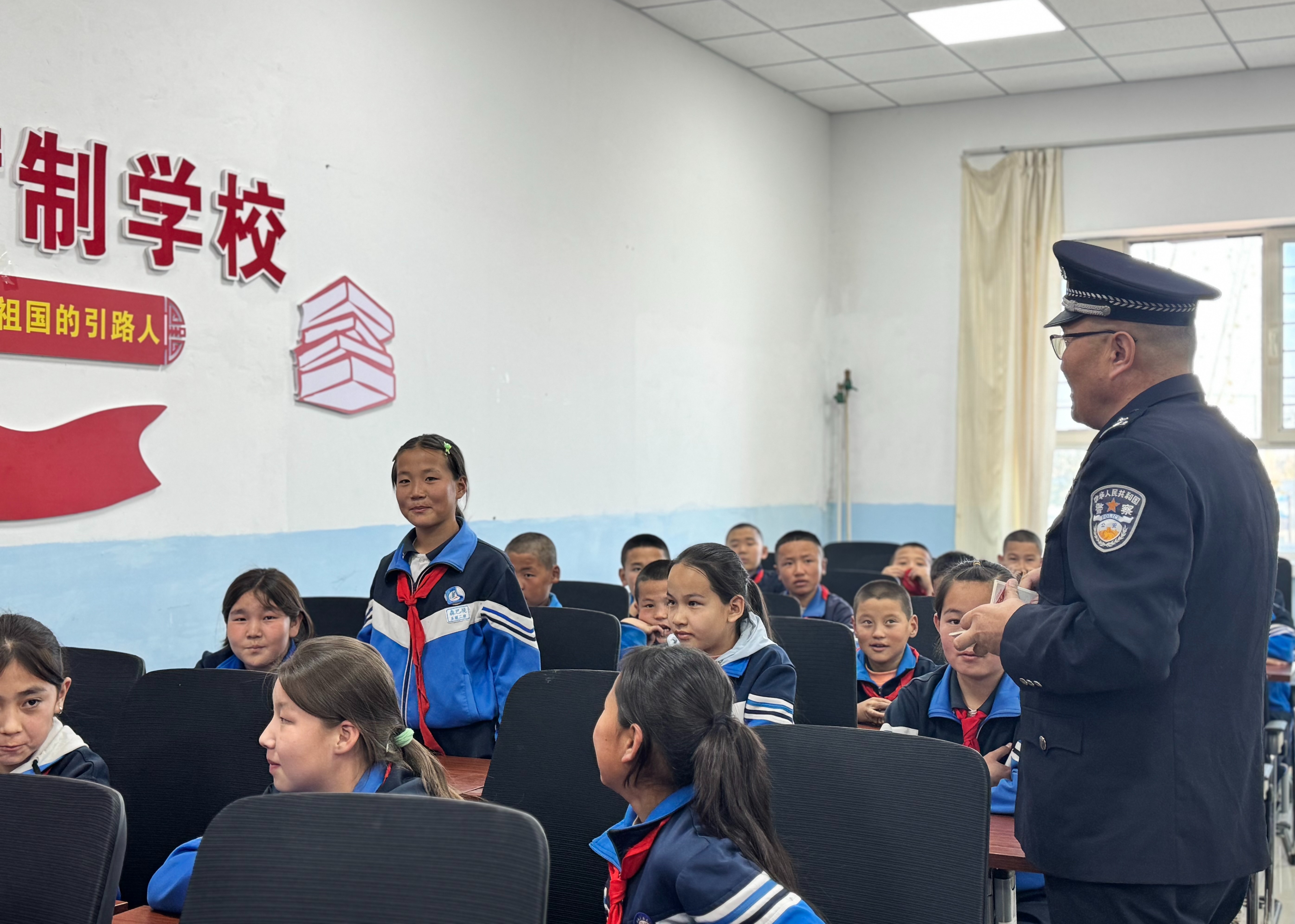 富蕴县公安局组织民辅警在辖区学校开展“法治进校园”主题宣传活动。通讯员 吐尼合·乌坦摄