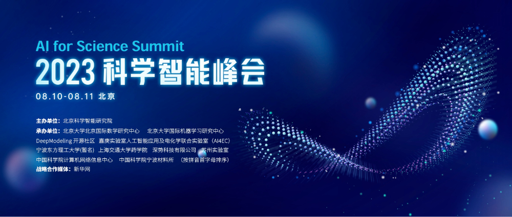 2023科学智能峰会由北京科学智能研究院主办,北京大学北京国际数学研究中心、北京大学国际机器学习研究中心、DeepModeling开源社区、嘉庚实验室人工智能应用及电化学联合实验室(AI4EC)、宁波东方理工大学(暂名)、上海交通大学药学院、深势科技有限公司、苏州实验室、中国科学院计算机网络信息中心、中国科学院宁波材料所承办(按拼音首字母排序)。