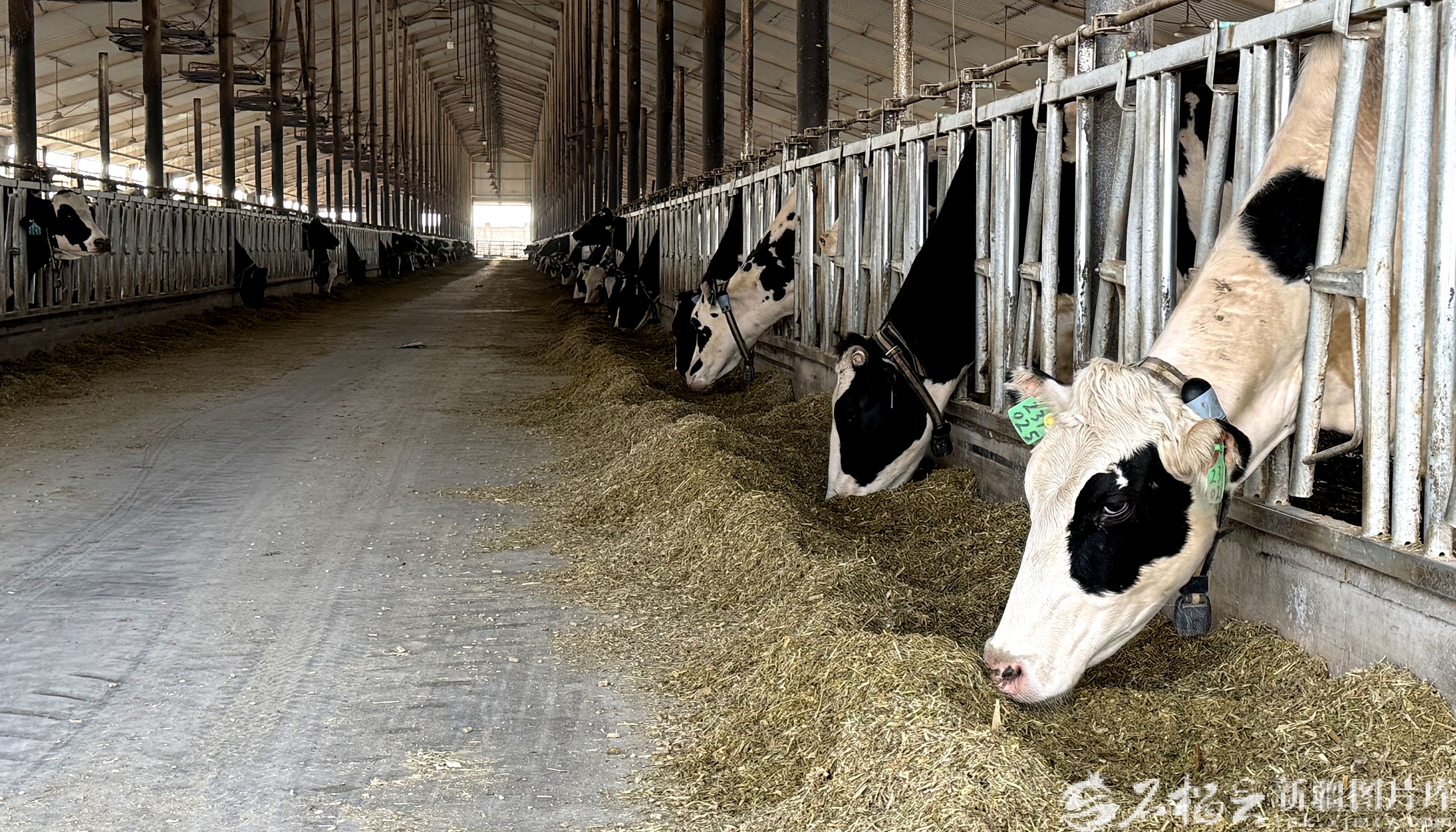 牧场通过电子耳标、智能项圈、TMR精准饲喂、60位转盘挤奶、冷水速冷等设备,对奶牛健康、繁殖、产奶全程数据化管控,原奶质量优于国家标准。企业先后通过兽药减量化牧场、国家学生饮用奶奶源基地验收,获评自治区奶畜养殖示范牧场、地区农业产业化重点龙头企业,年供应优质生牛乳1.1万吨,带动35人就业,8个村集体年均增收150余万元,实现了企业发展与群众增收双赢。