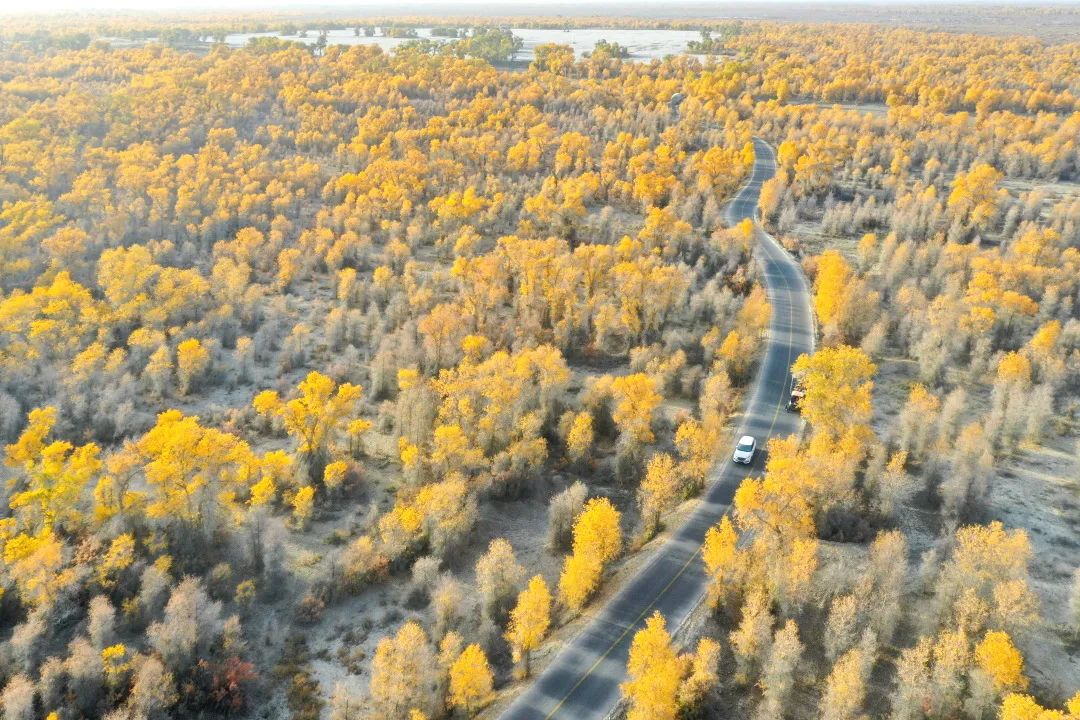 沙雅139胡杨秘境公路。地区文化体育广播电视和旅游局 供图