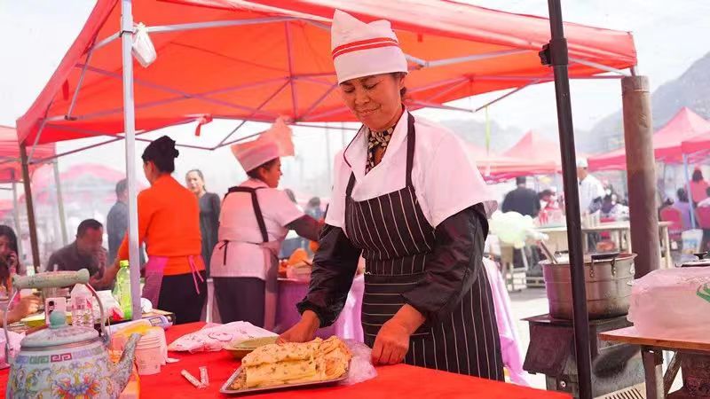 这是米热古丽在杏花节摆摊卖烧烤的第三个年头。今年她家的烧烤摊与往年一样,很受游客欢迎。“现在,我们的食材都快用完了,这次活动对我们来说是挣钱的好时候。”米热古丽兴奋地说,“借助杏花村的人流,不仅卖出了大量的烧烤,还通过让游客体验做烧烤,提升了销售额。”