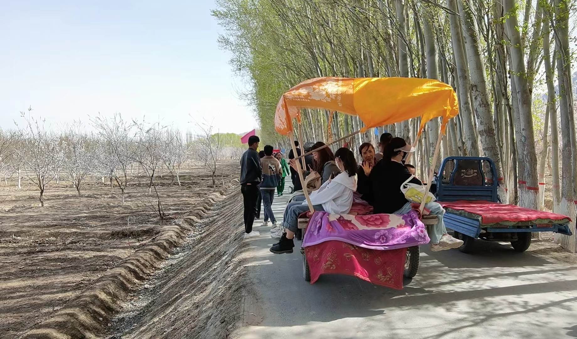杏花村不仅为游客们提供了一个欣赏美景、感受文化的好去处,更为各族群众提供了一个创业增收的新平台。他们有的摆摊销售自家的农产品和手工艺品,有的通过装扮马车、三轮摩托车、骆驼等方式,实现了家门口的就业和创业,获得一份额外收入。
