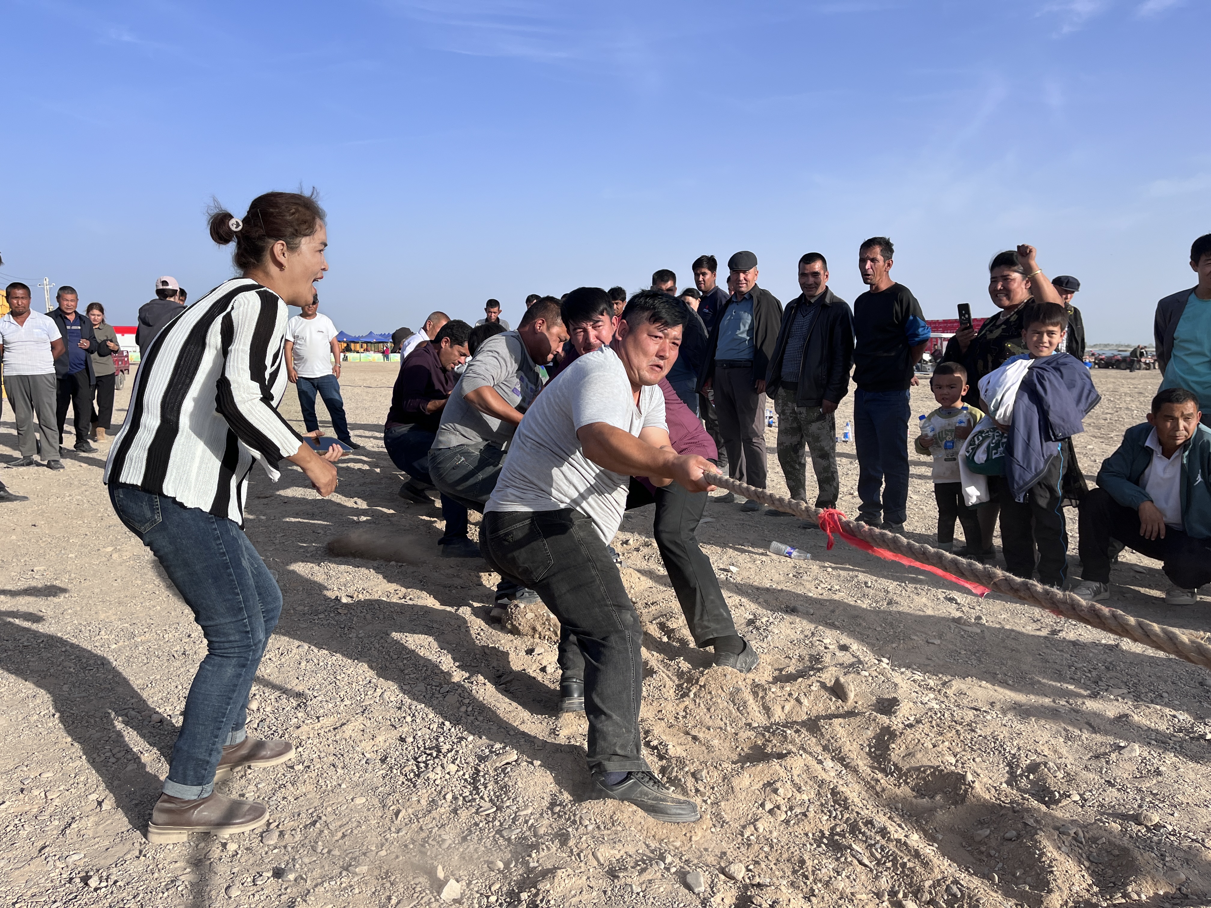 沙雅县英买力镇举办“欢度国庆·全民同心” 拔河比赛暨民族团结一家亲活动