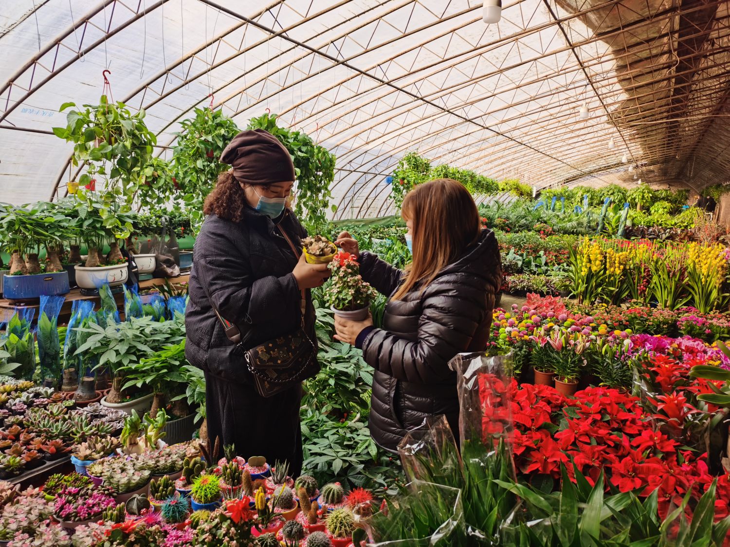 乌什县乌什镇居民玛依热·艾尼外尔说:“快过年了,我带家人来花市选购一些绿植,新年新气象,也想为家里增添点绿色,这里花的种类非常多,价格还很实惠。”