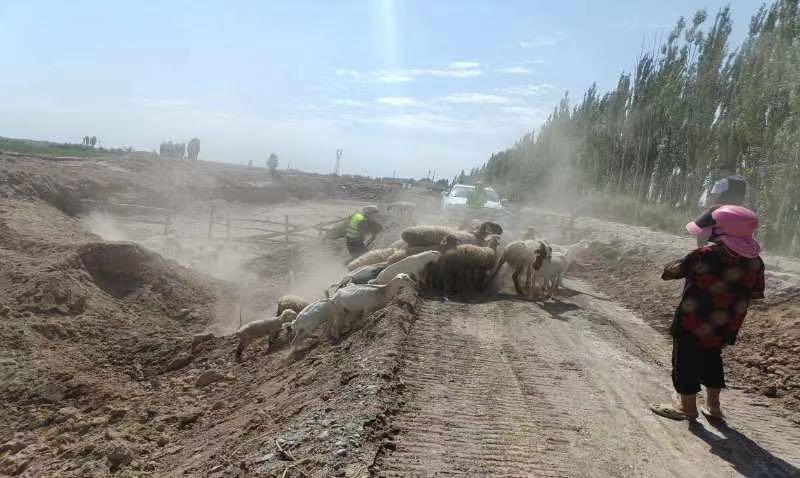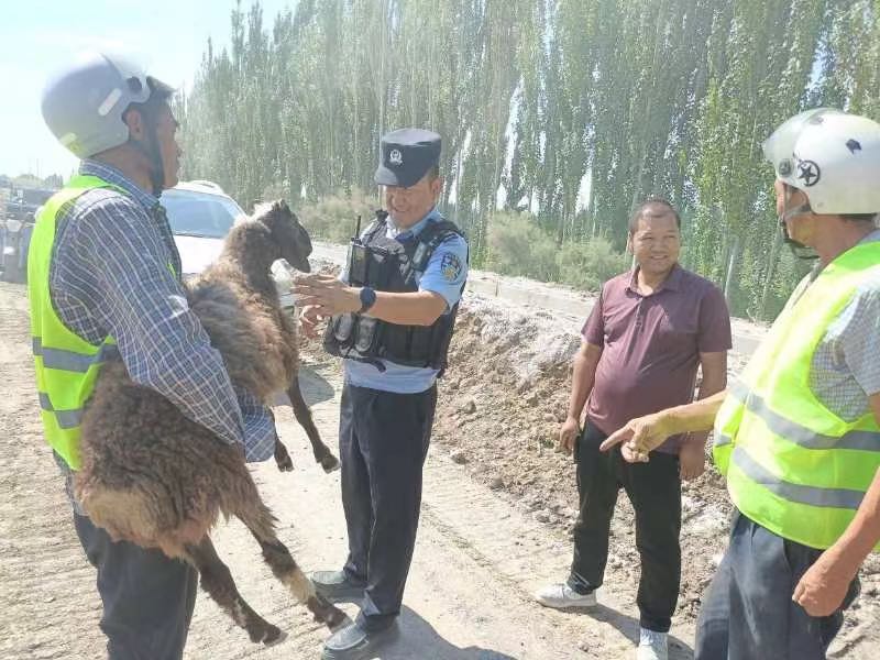 8月4日13时许,阿克吾斯塘派出所民辅警巡逻过程中遇到群众求助,称其自己一只羊掉落羊群,希望民警可以帮助寻找。