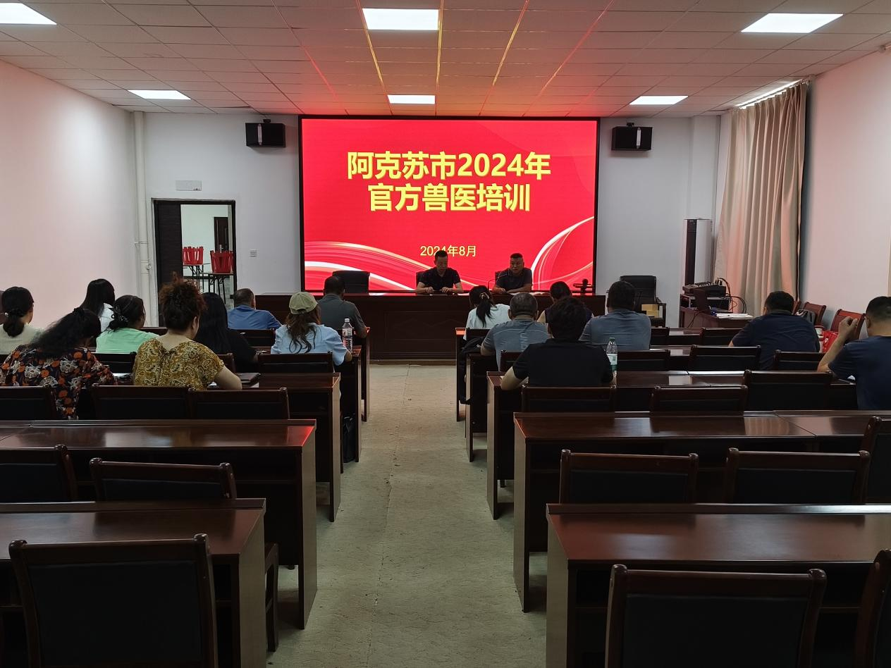 阿克苏新闻网/地区融媒体中心讯(通讯员 阿不拉江·萨吾尔 张节康 高鹏 肖潇)为适应当前动物疫病防控和动物卫生监督工作,加强我市官方兽医队伍建设,提升官方兽医业务能力和水平,8月14日阿克苏市举办官方兽医业务培训班。