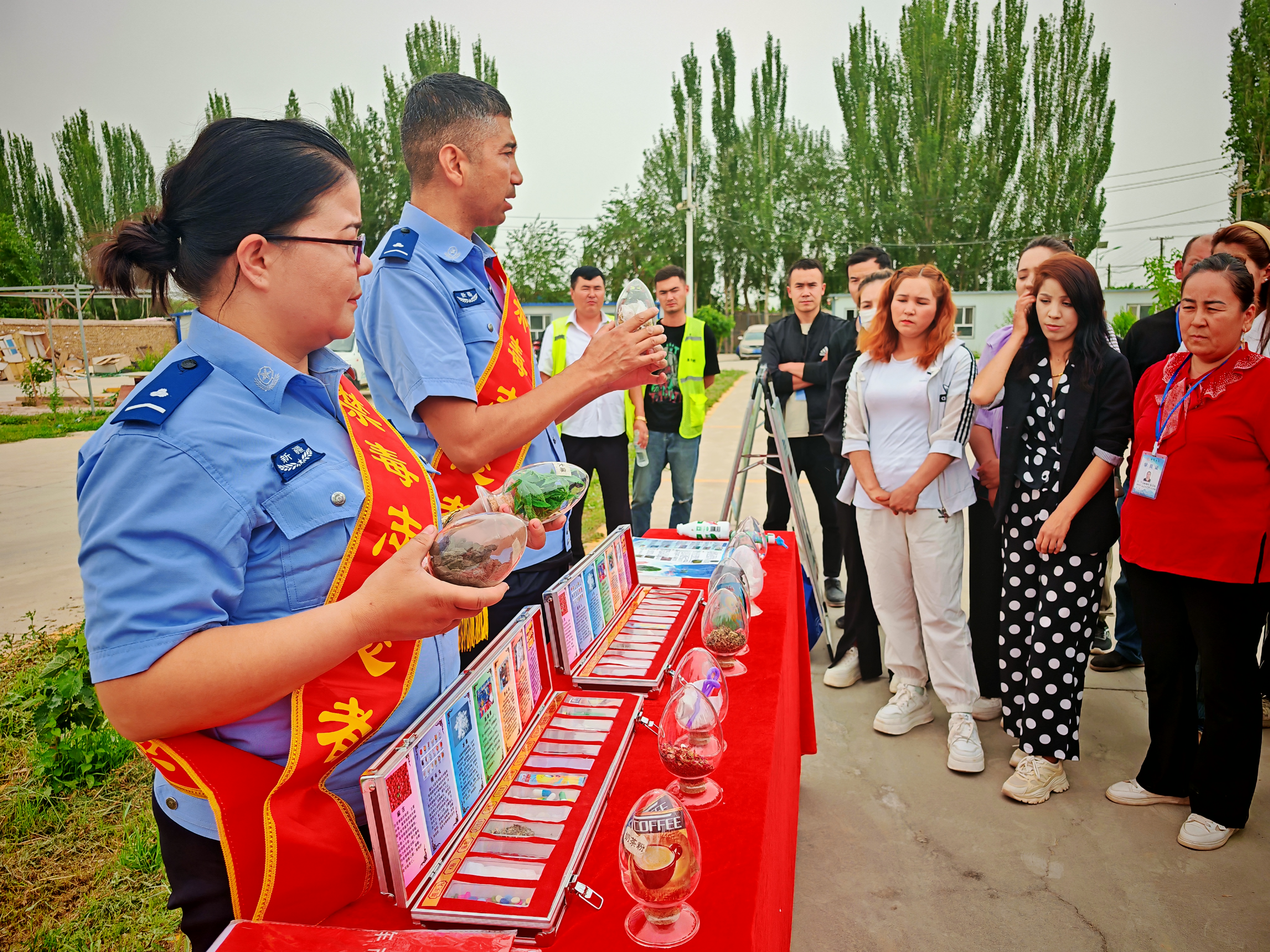 活动现场,民警通过摆放毒品仿真模型、发放禁毒宣传手册、展示真实案例展板等形式,向50余名学员详细讲解了传统毒品与新型毒品的伪装特征。“芬太尼类物质可能被混入电子烟油,LSD邮票可能伪装成卡通贴纸……”民警结合涉毒驾驶引发的交通事故案例,强调“毒驾”对个人、家庭及社会的严重危害。 “原来吸毒后连刹车都踩不稳,太可怕了!”学员阿孜古丽感慨道。现场还通过有奖问答等互动环节,强化学习效果。