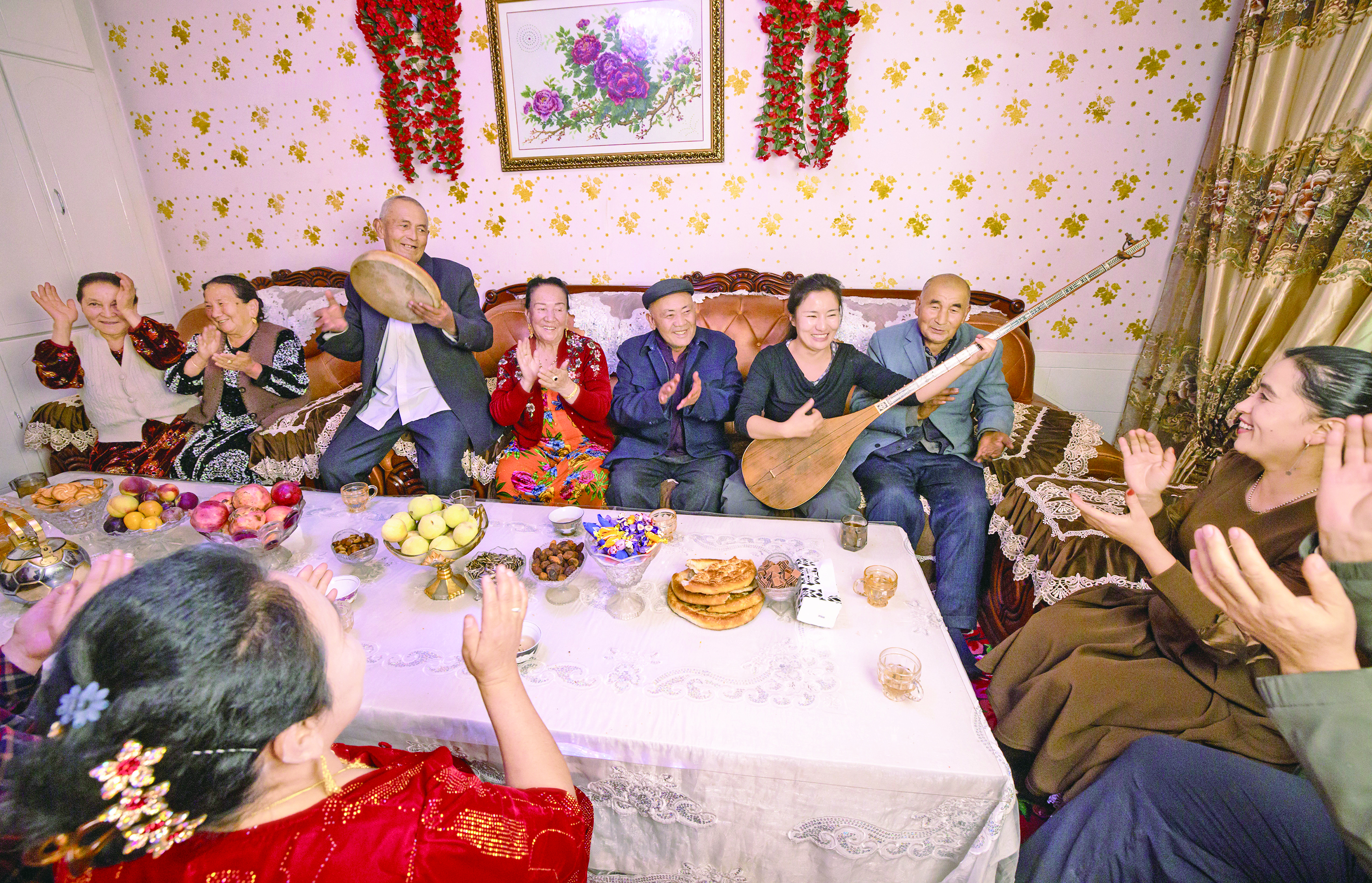 10月28日,库车市乌尊镇三星村举行“爱在重阳 最美夕阳”主题活动,村里的年轻党员干部和老年人欢聚一堂、载歌载舞,庆祝即将到来的重阳佳节。