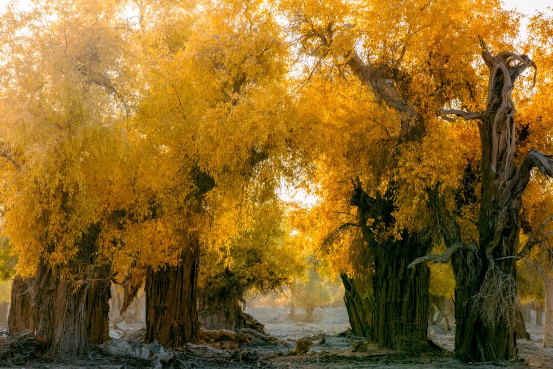 10 月下旬到 11 月上旬是 “黄金期”,此时胡杨叶片基本全黄,且没有大面积落叶,错过就要等明年;