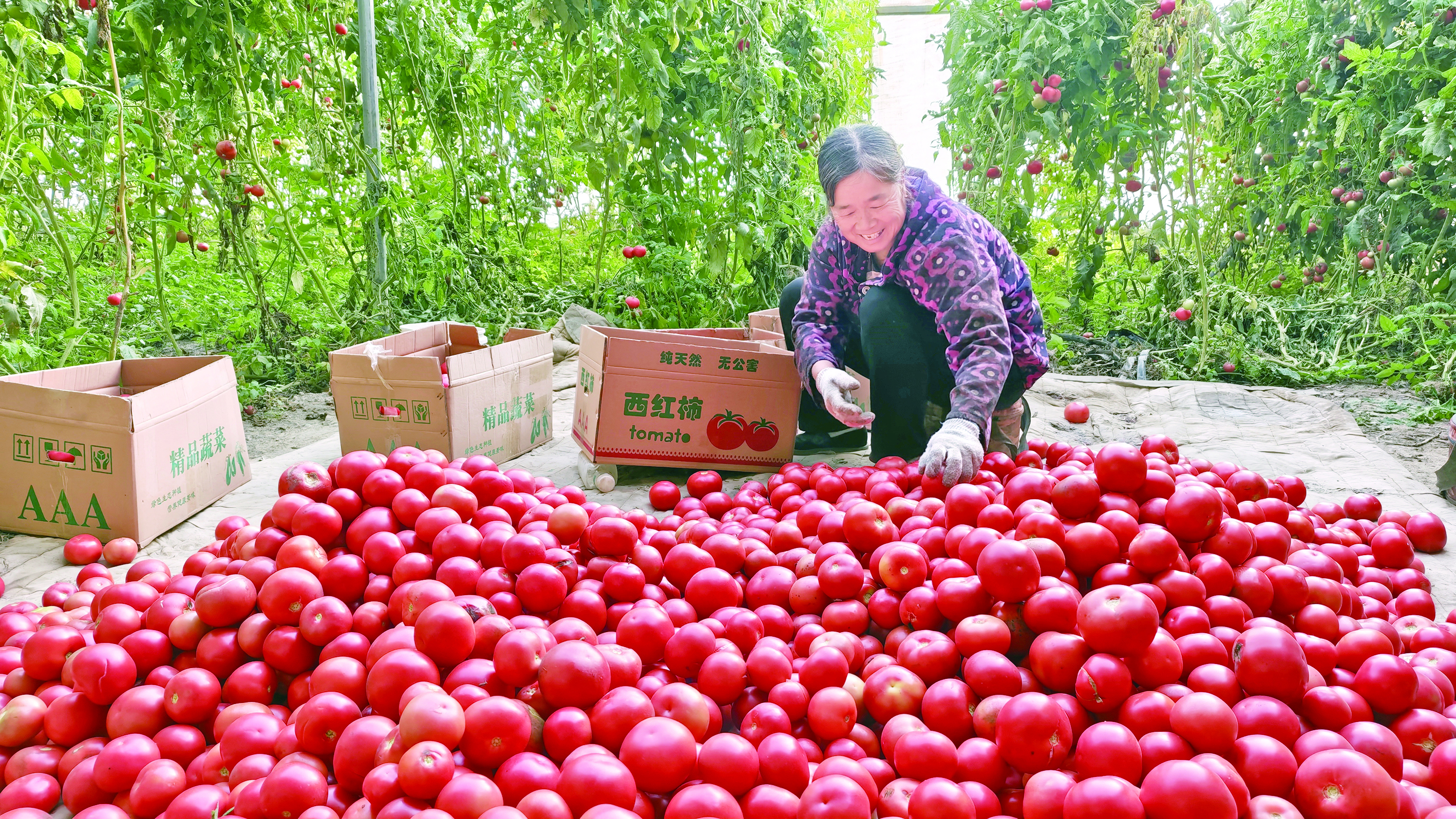 11月25日,在阿克苏地区阿瓦提县乌鲁却勒镇红旗村蔬菜种植基地,村民正忙着分拣西红柿。