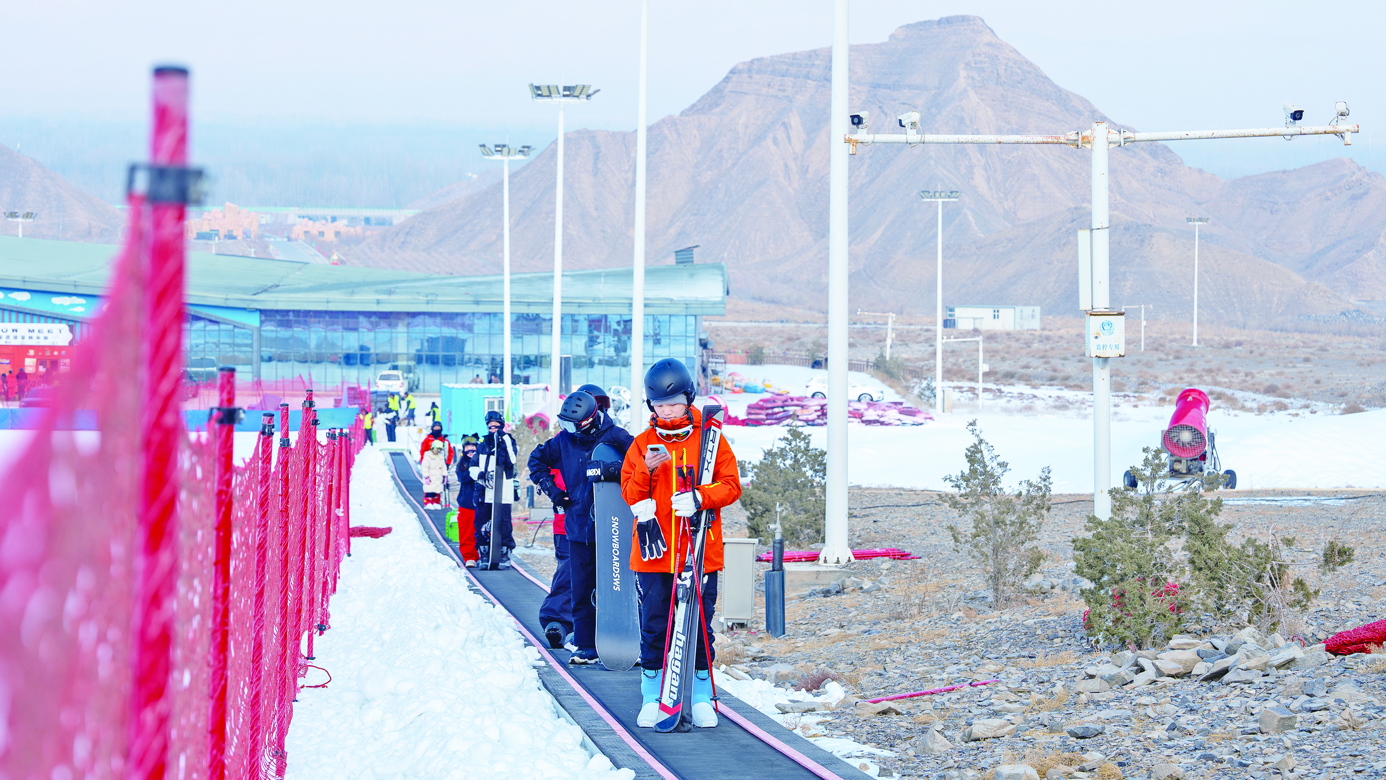 当天,雪具大厅里,雪板、雪鞋、头盔整齐排列,工作人员忙着给装备消毒保养,耐心解答游客的疑问。