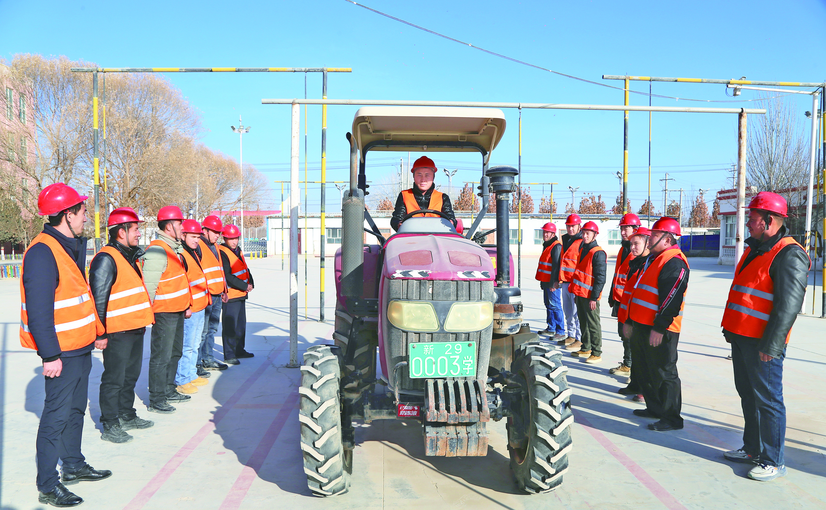 12月9日,在阿瓦提县技工学校,学员练习农机驾驶技能。