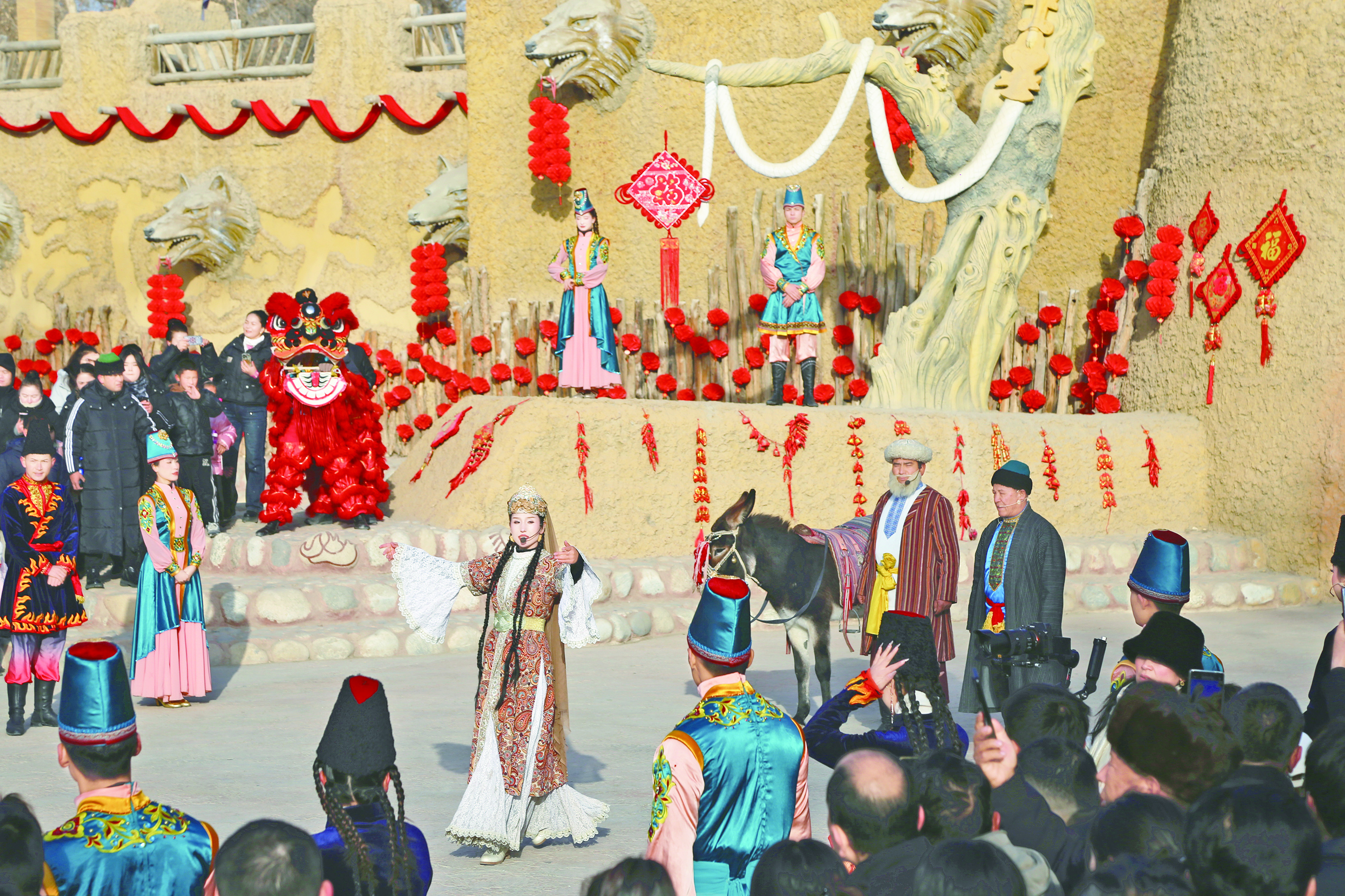 12月20日,在阿克苏地区阿瓦提县刀郎部落景区,演员为游客表演精彩节目。 通讯员 包良廷 摄