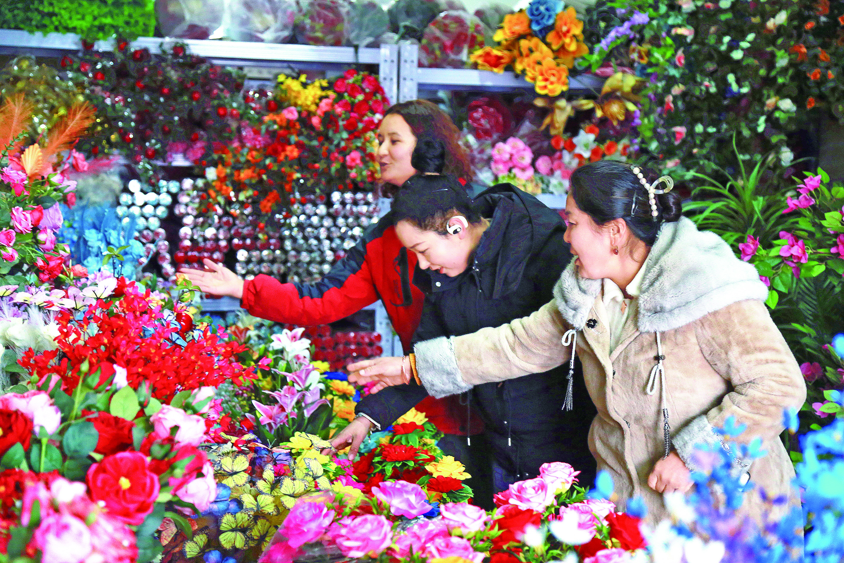 12月29日,顾客正在阿瓦提县阿瓦提镇胜利社区花艺市场挑选鲜花。元旦临近,各族群众纷纷购买鲜花装点家居,喜迎新年。 通讯员 包良廷 摄