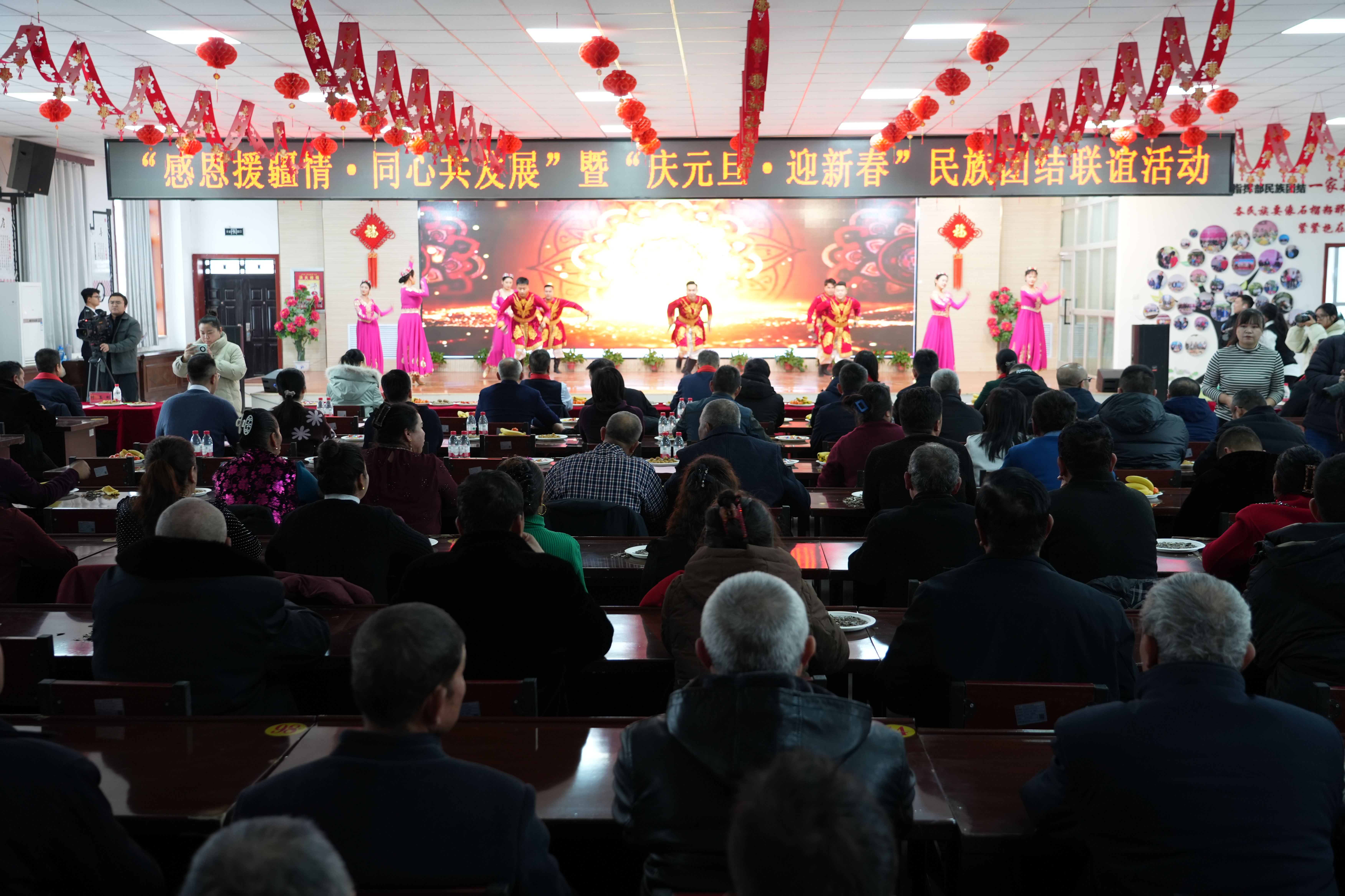 在阿克苏市依干其镇尤喀克巴里当村一场以“感恩援疆情·同心共发展”暨“庆元旦、迎新春”为主题的民族团结联谊活动开展火热,各族群众欢聚一堂,载歌载舞,共叙深厚情谊,喜迎新年。