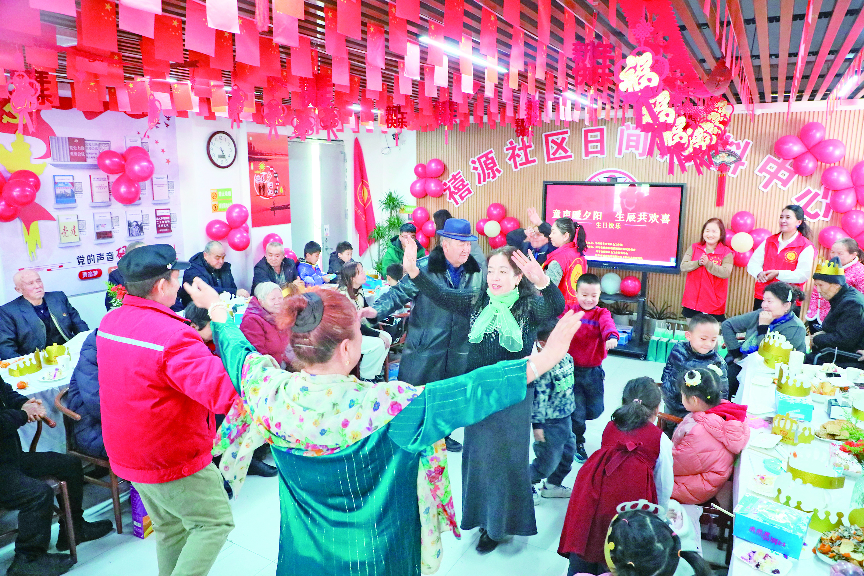 1月15日,阿克苏地区库车市城南街道禧源社区居民欢度美好时光。当日,库车市委社会工作部联合该社区开展集体生日活动,以多元化服务满足老年群体和未成年群体的多元需求。