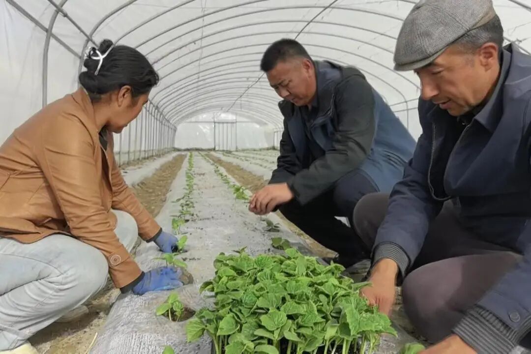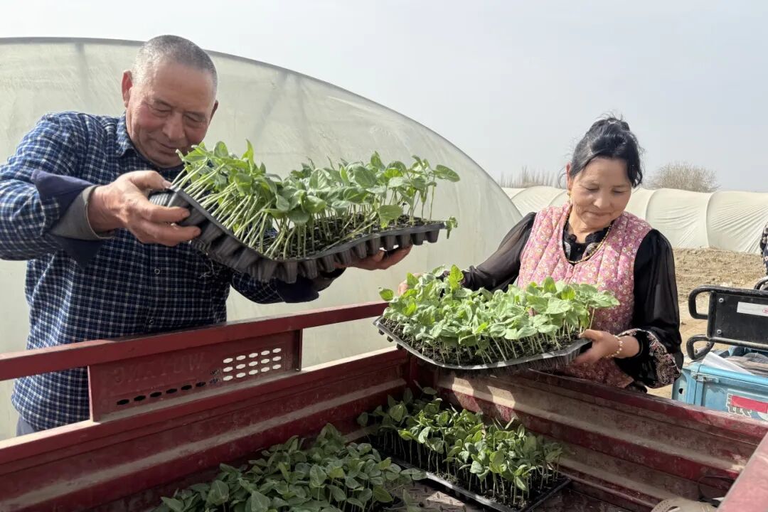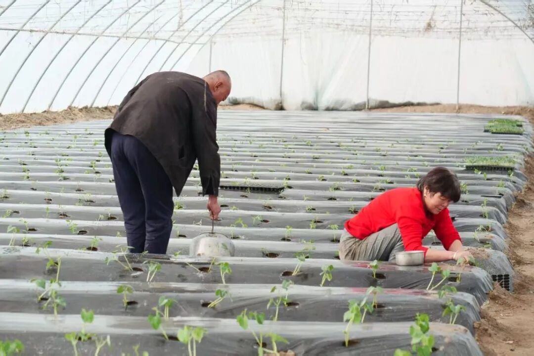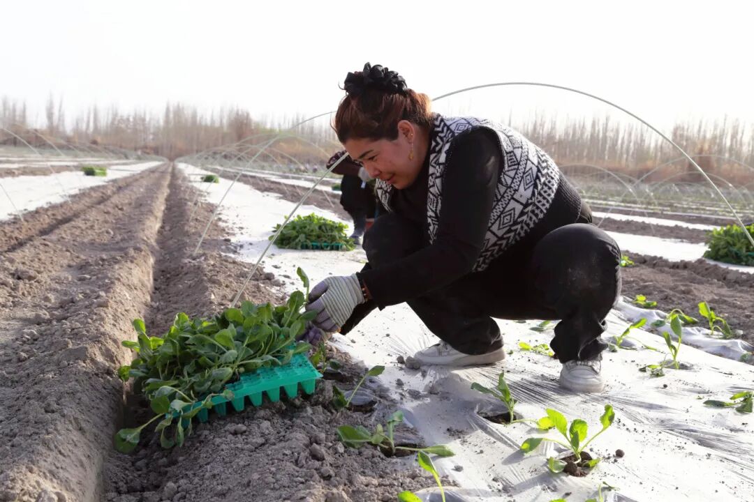 近日,沙雅县古勒巴格镇阿勒迪尔村村民有序开展辣椒、西红柿、甜瓜等果蔬幼苗移栽定植。通讯员 王水江 摄