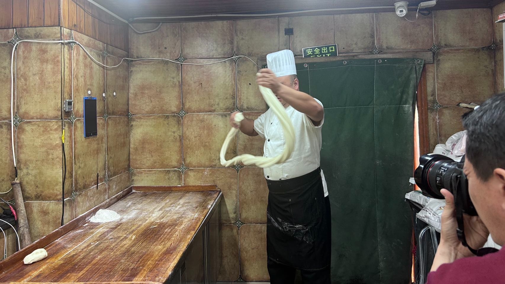 转机出现在2022年春季。有一次刷短视频时,于散江灵光一闪:“既然大家喜欢看新奇的手艺,我可以把做汤面的绝活拍下来,让更多人看到。”