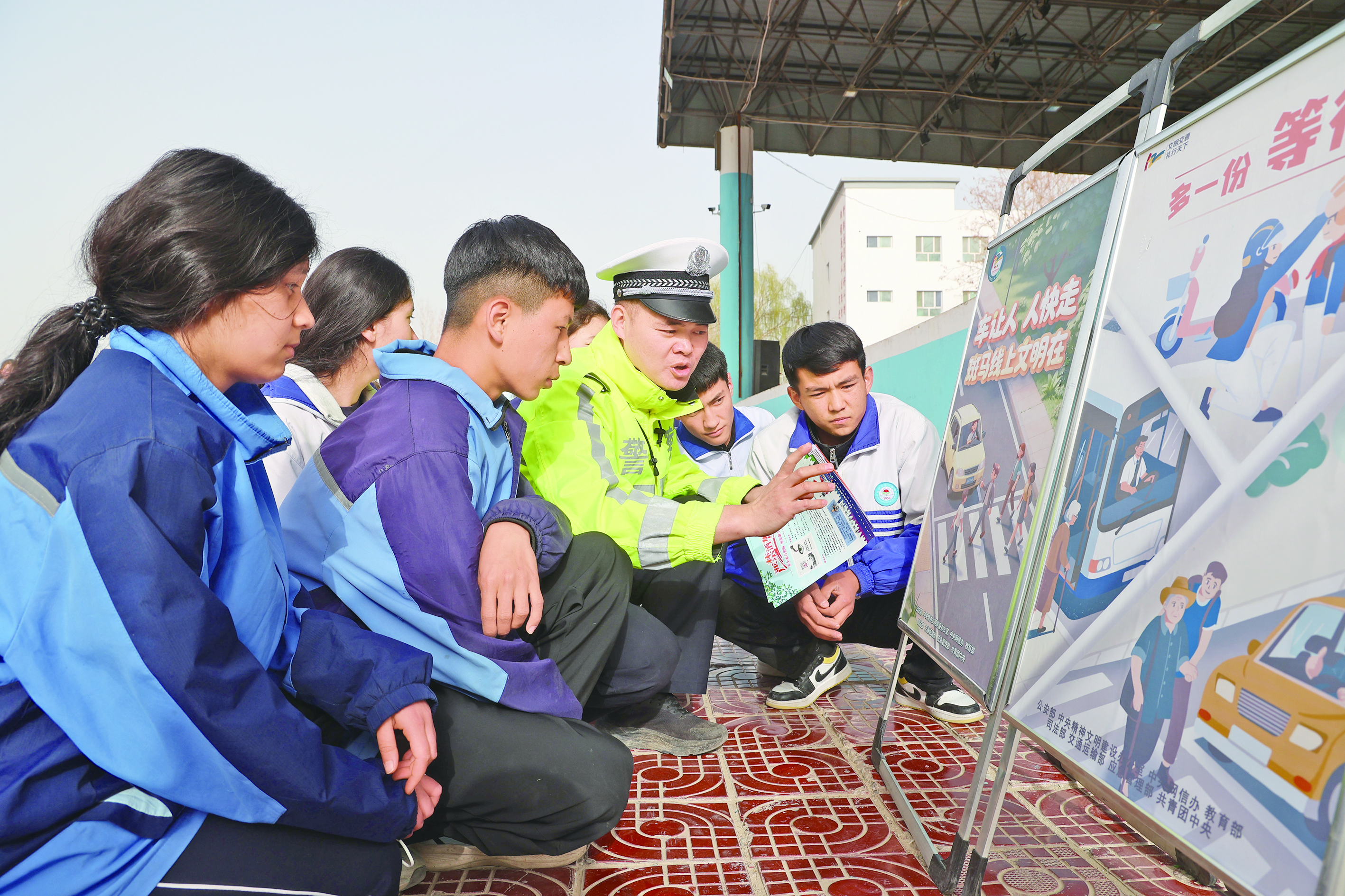 3月27日,乌什县公安局交通管理大队民警走进乌什县第一中学,为全校师生送上“交通安全大礼包”。 通讯员 外力·克依木 摄