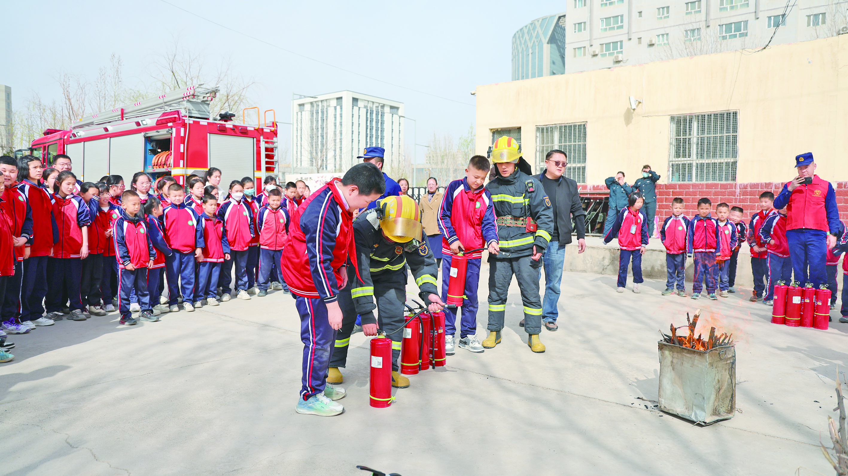 3月26日,库车市消防救援大队联合市教育局、林基路志愿服务队走进市第十三小学,开展消防安全宣传活动。 通讯员 王雪妮 摄