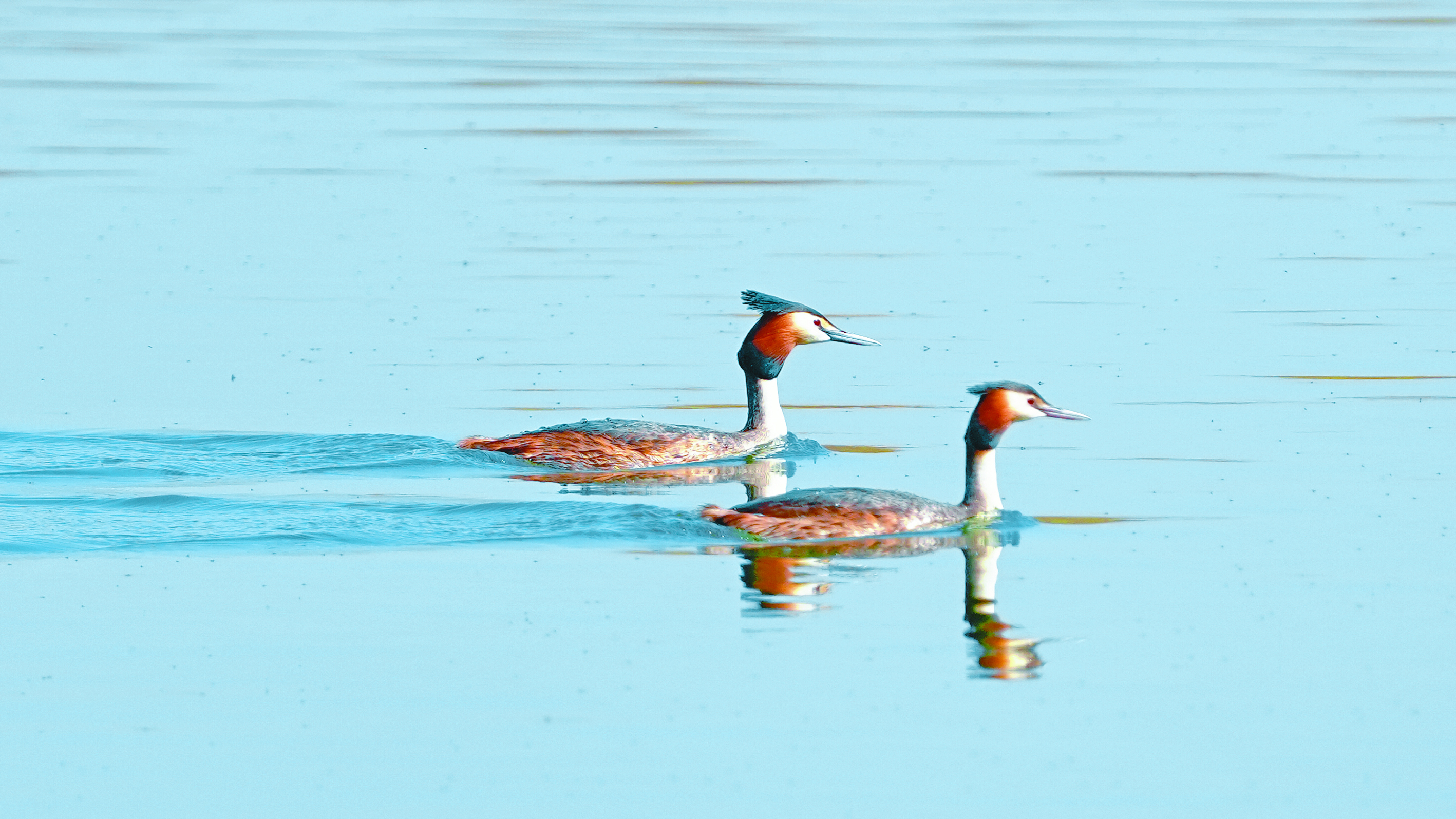 水鸟结伴游弋。