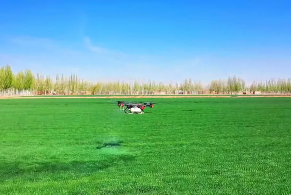 近日,乌什县前进镇乌鲁克亚依拉克村种植户利用植保无人机开展麦田管护。通讯员 外力·克依木 摄