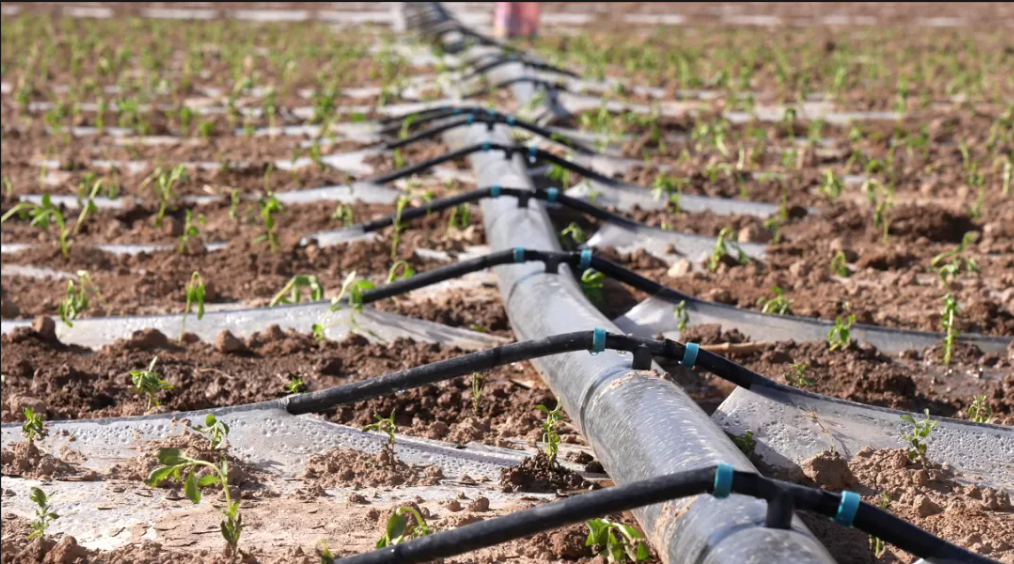 4月13日,拜城县赛里木镇采用滴灌覆膜栽培技术种植甜叶菊,助力农户增收。通讯员 阿卜杜艾则孜·图尔荪 摄