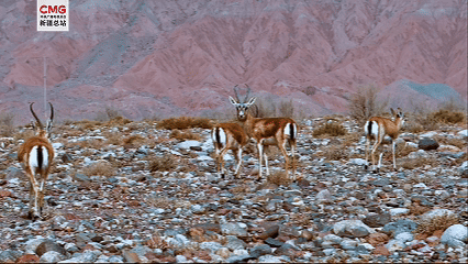 《新疆温宿:鹅喉羚“组团春游” 漫步戈壁添生机》
