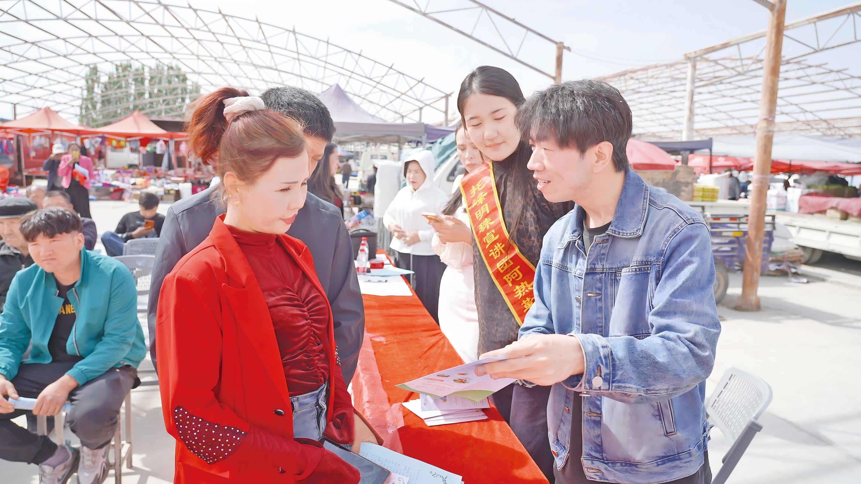 ?4月16日,温宿县阿热勒镇“桃源芬芳”宣讲队走进辖区巴扎开展普法宣传活动。宣讲员通过发放宣传资料、现场答疑解读、讲解典型案例等方式,普及法律法规与安全常识。 通讯员 高渴遥 摄