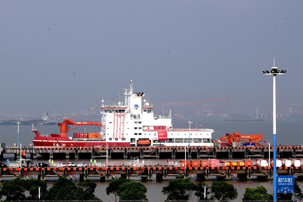 9月27日,“雪龙2”号极地科考破冰船停泊在中国极地考察国内基地码头。新华社记者 张建松 摄