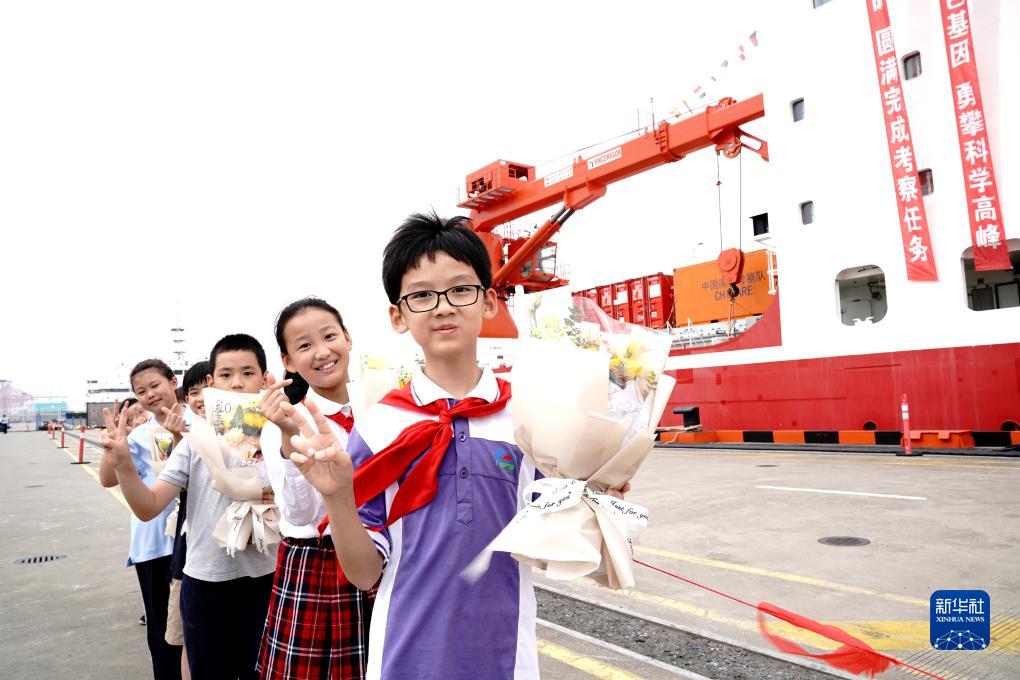 9月27日,小朋友们在码头欢迎中国第13次北冰洋科学考察队凯旋。新华社记者 张建松 摄