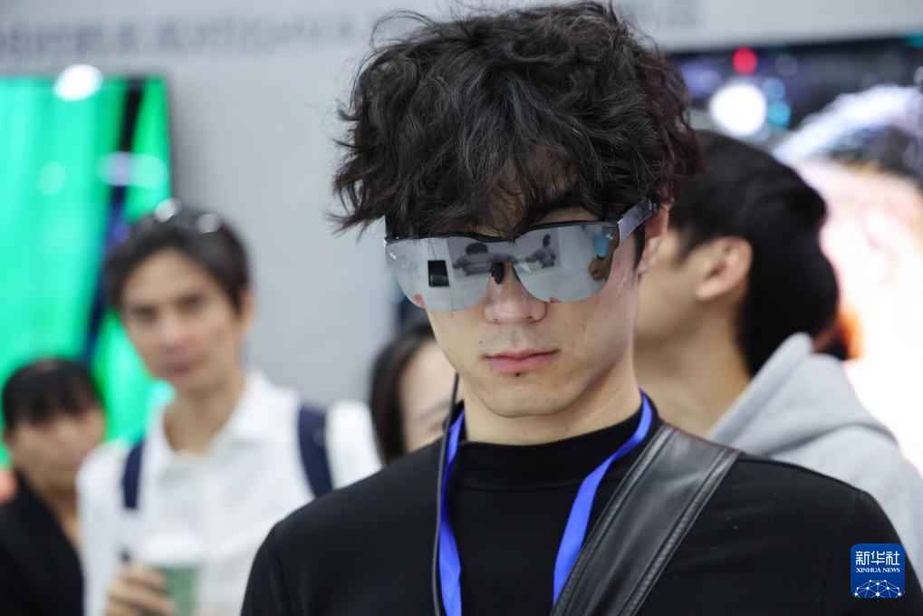 4月9日,观众在第十三届中国电子信息博览会上体验一款智能眼镜。新华社记者 梁旭 摄