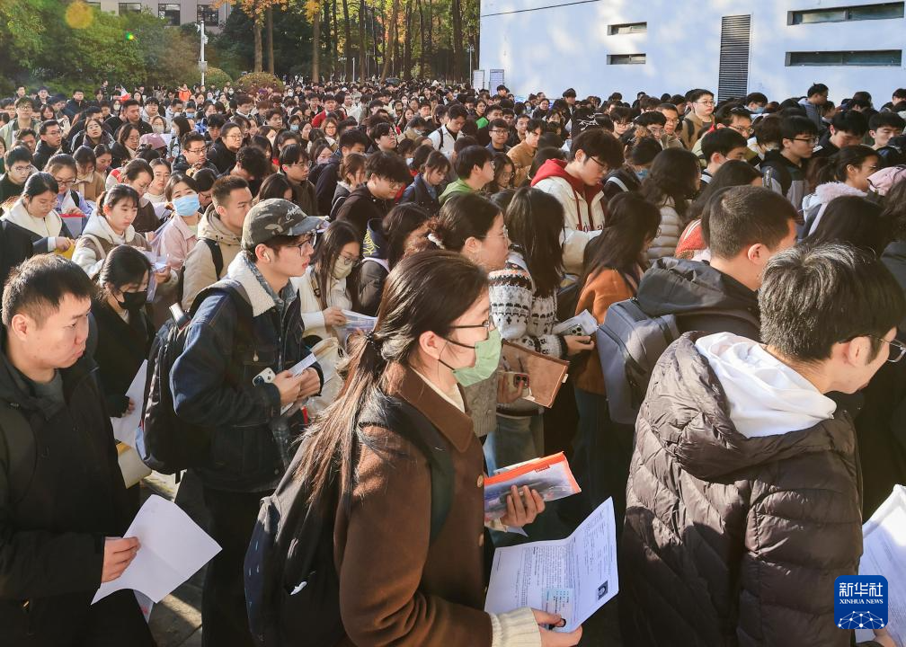 11月30日,在南京林业大学考点,考生进场准备参加考试。新华社发(苏阳 摄)