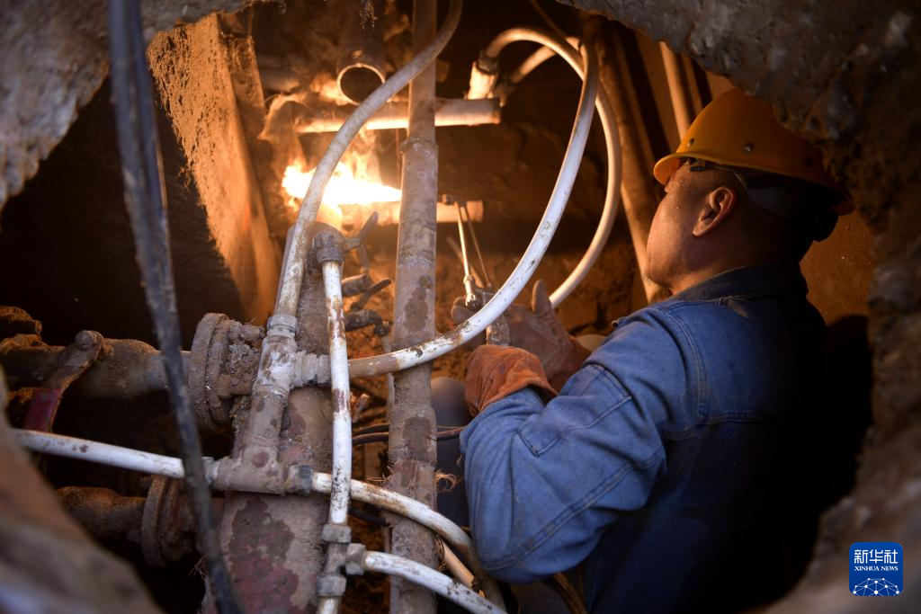 12月11日,热力工作人员在河南省鹤壁市淇滨区一小区抢修供热管道。新华社发(赵永强摄)