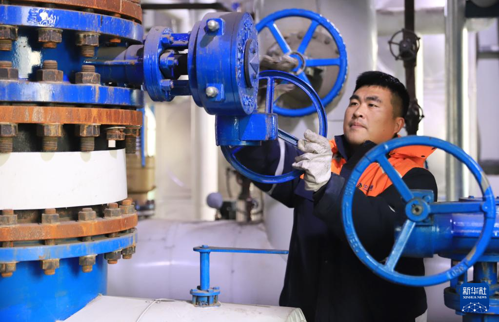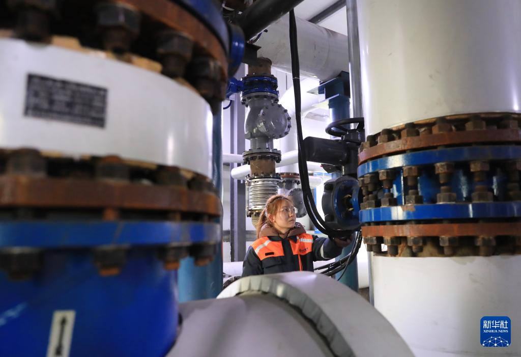12月10日,热力公司员工在河南省焦作市温县城区集中供暖首站对供热设备进行检查。新华社发(黄福兴摄)