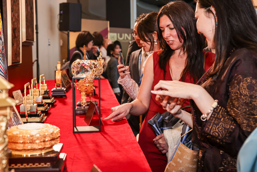 ↑2025年5月19日,在位于纽约的联合国总部,人们参观故宫文创展。“生生不息——故宫文创走进联合国主题展”开幕式暨故宫博物院成立100周年邮票发布仪式5月19日在联合国总部举行,120余位各国驻联合国大使及国际组织代表参加。