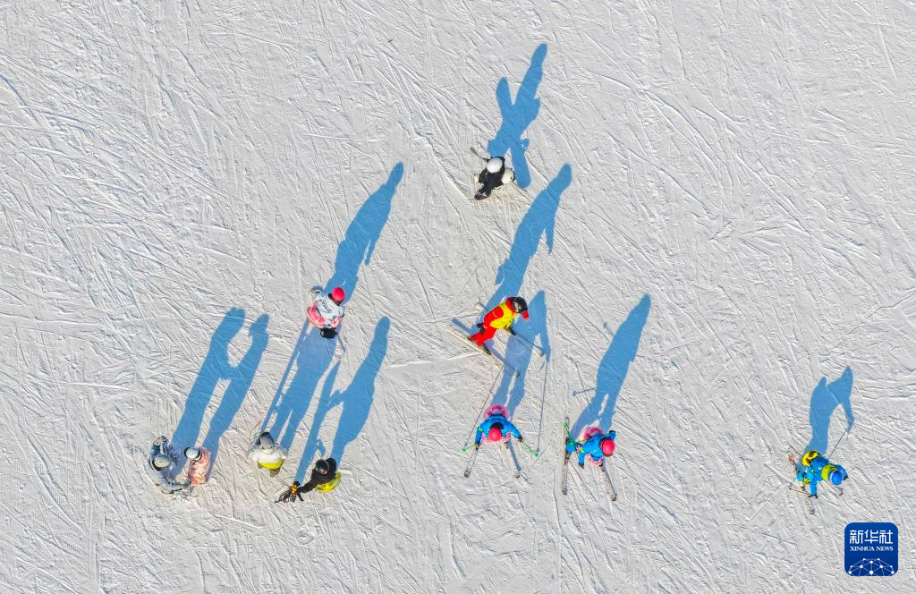 12月28日,人们在河北省玉田县玉龙湾滑雪场滑雪(无人机照片)。新华社发(刘满仓 摄)
