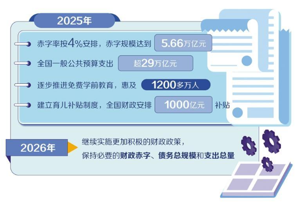 按照部署,2026年我国将会保持必要的财政赤字、债务总规模和支出总量。
