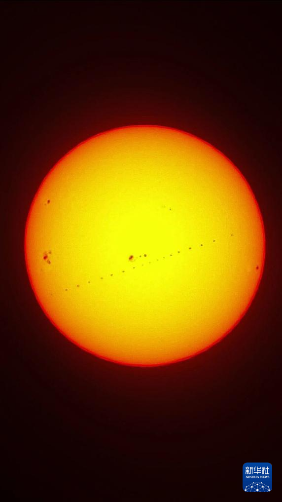 1月16日,在北京丰台花园拍摄的中国空间站飞过太阳的过程(堆栈合成照片)。新华社记者 邢广利 摄