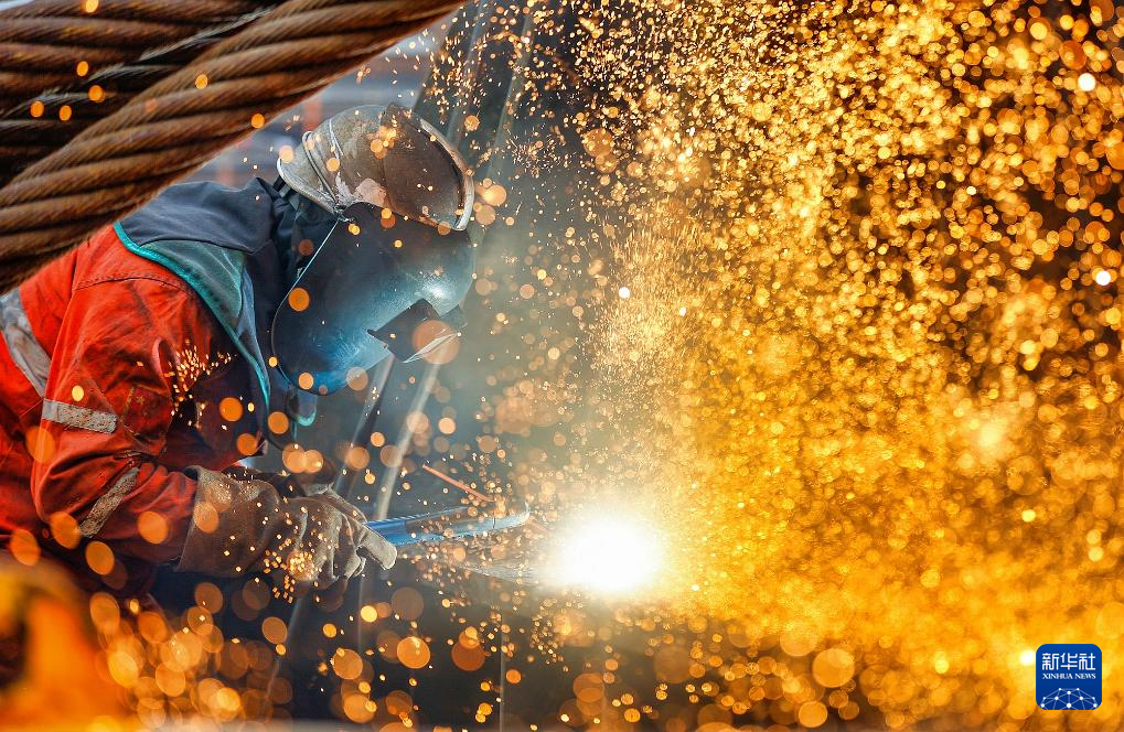 1月29日,在天津市滨海新区,海上油气平台建设工人进行现场施工。新华社发(杜鹏辉摄)